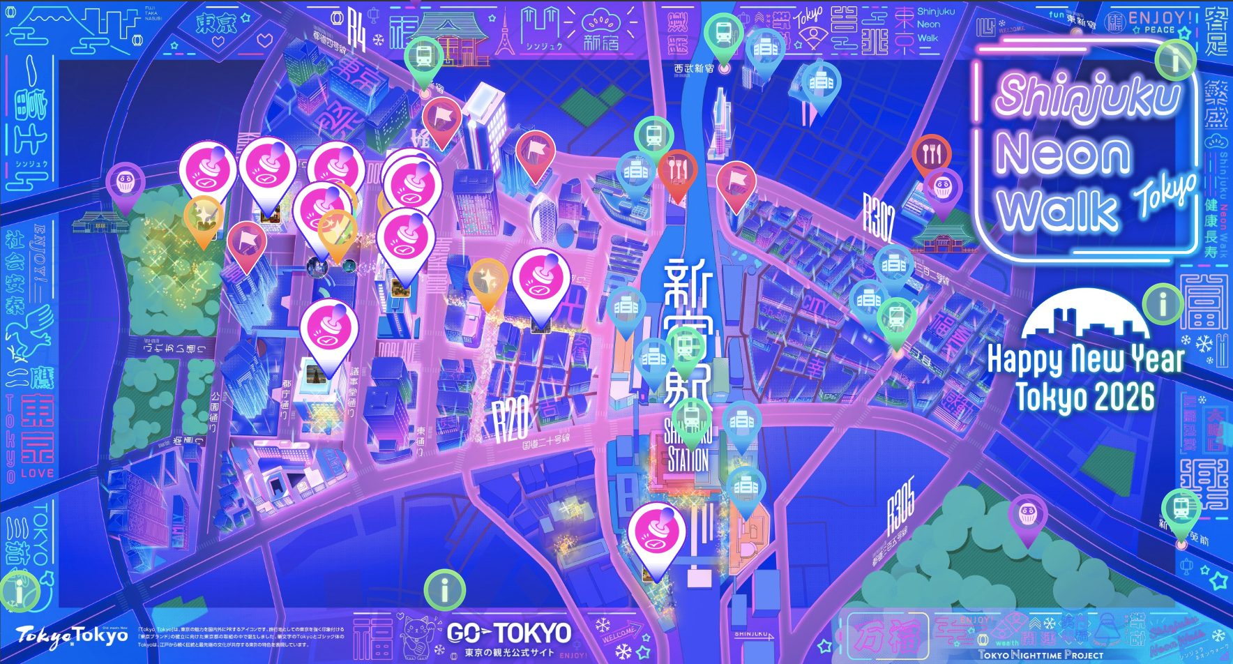 新宿エリアの観光スポットを紹介するイベント限定の「新宿イルミネーションデジタルマップ」が公開されました。イルミネーションの世界観を生かしたオリジナルイラストで、“見て楽しく・使って便利”なマップとなっています。