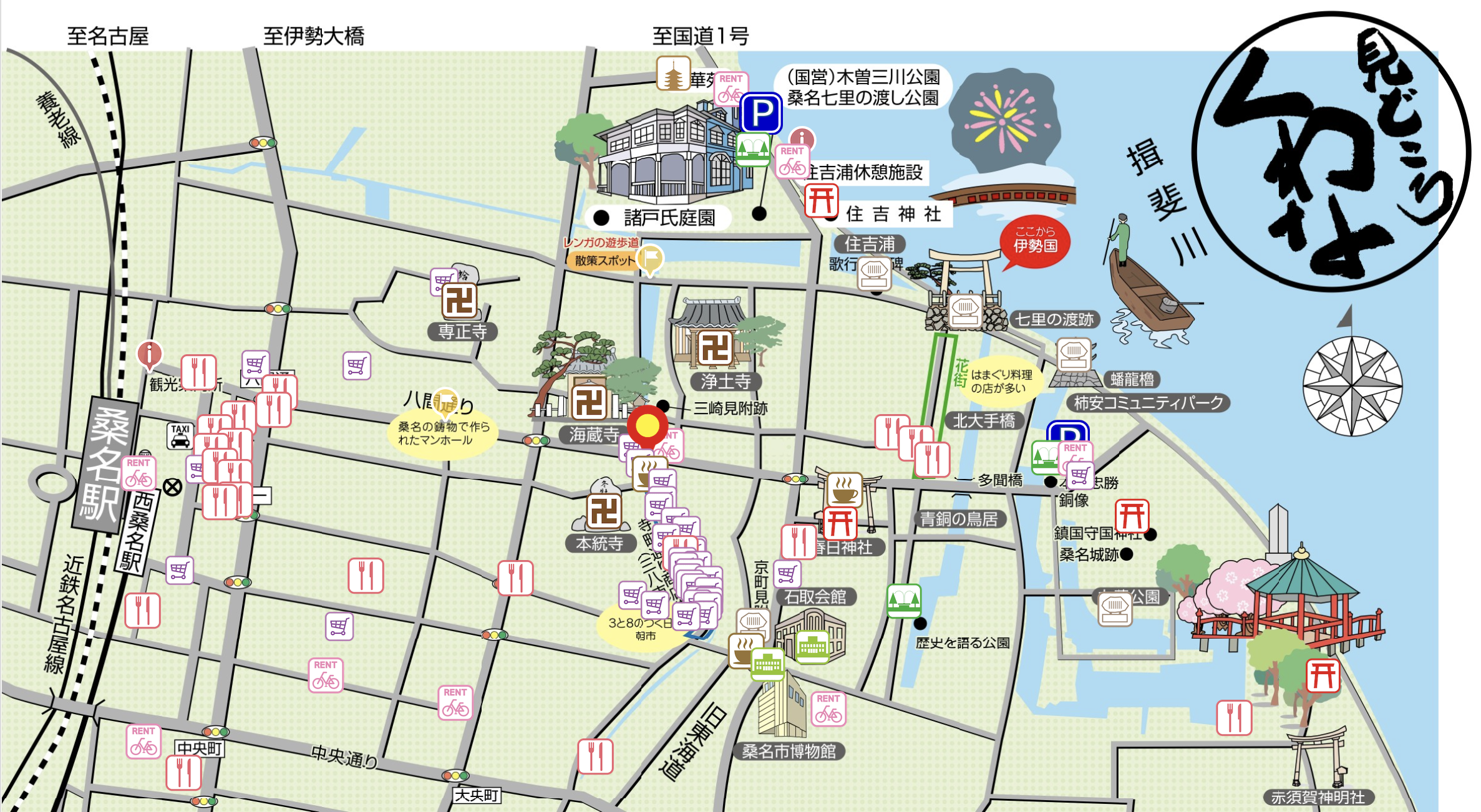 桑名駅の東側を中心に、桑名の「見どころ」を紹介するマップです。
